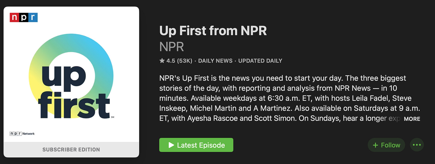 The first and foremost thing you should do is be aware. People even knowing what is happening is half the battle. And that doesn’t mean be glued to Twitter, follow every substack, and put CNN in on the background. But you can maybe put on Up First from NPR—a 10-minute daily podcast just rounding up the news—while you drive to work. Throw on The Daily Show once in a while when you're eating your lunch. Being aware is both important for your own safety, and everyone around you. And for those of you who are deep into the 17th Substack article, and scroll Twitter once hourly, get proactive and use that energy towards good. See if your congressperson has any town halls, join a community around you fighting for causes you care about, or donate a little to those causes. Turn that frustration into activism. Stay safe you guys, I’ll see you back on Monday.